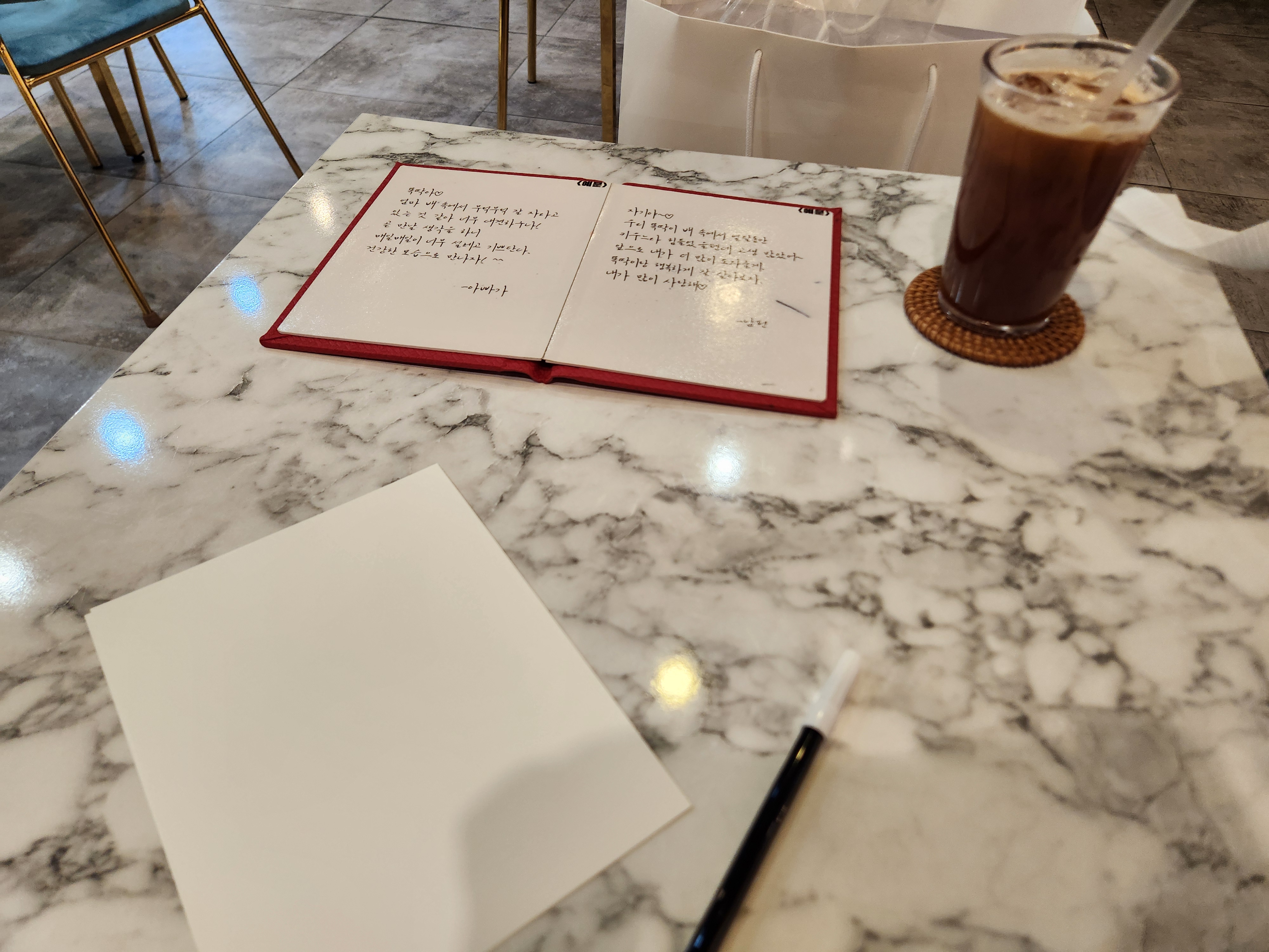 그리고 아내가 메이크업할 때 저한테 아기랑 아내에게 편지 쓰라고 하시더라고요.
